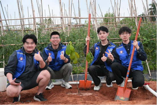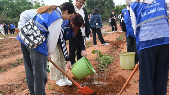 孙涛书记、骆彦平教授与师生们并肩劳作,亲手栽种菠萝蜜树苗。在劳动过程中与同学们亲切交流,孙书记勉励同学们要将生态文明理念融入日常学习与生活,以青春之力践行绿色担当,在劳动实践中感悟奋斗意义,让“爱绿、植绿、护绿、兴绿”的种子在心中生根发芽,用实际行动为美丽校园建设、海南自贸港“绿美”建设贡献青春力量。