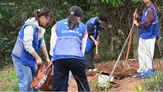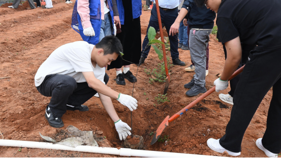 师生们热情高涨、分工协作、配合默契,扶苗定根、挥锹培土、踩实浇水,每一个环节都一丝不苟,用心栽种下一棵棵充满生机的苗木。铁锹起落间,一棵棵新苗迎风挺立,为春日的校园增添了盎然生机;汗水挥洒中,师生们将爱校之情、护绿之心深深融入泥土,让每一株苗木都成为校园生态文明建设的鲜活载体。