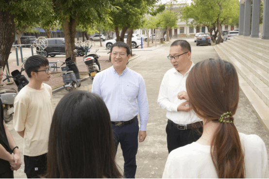 孙涛书记来到实习点,与板桥镇党委刘安镇书记深入交流学生实习实践情况,对板桥镇党委政府给予学生实习实践工作的大力支持表示衷心感谢,并表示书院将进一步加强与板桥镇的沟通协同,共同为学生搭建更优质的实践平台,助力学生在实践中受教育、长才干、作贡献,他详细询问学生们的饮食起居、工作任务及遇到的困难,鼓励大家多观察、多思考,将专业所学与地方需求相结合,为海南乡村谋振兴。